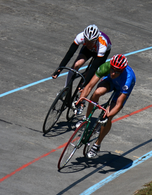 Peta watches Stewart, racing for 1st in C grade